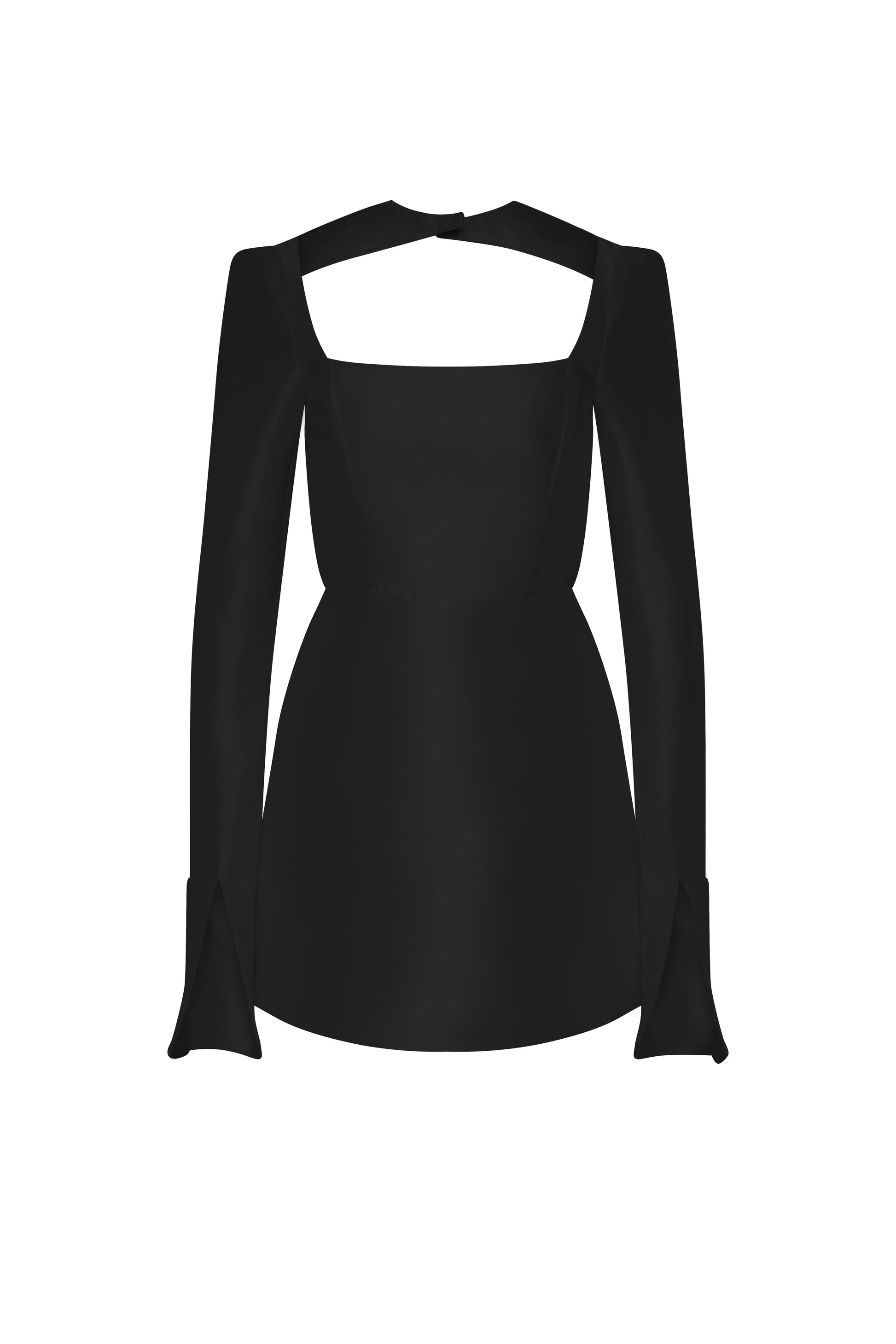 LONG SLEEVE MINI DRESS WITH OPEN BACK IN BLACK