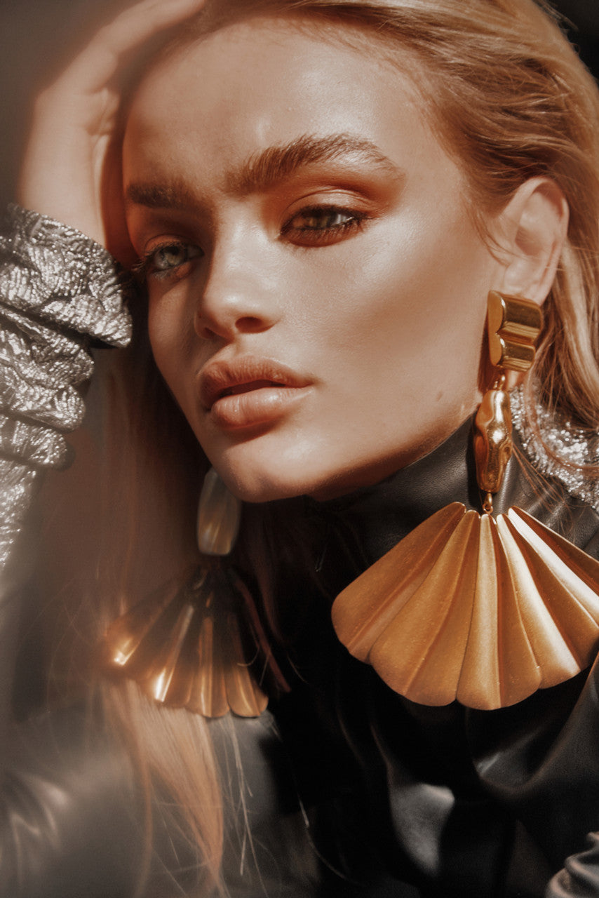 GOLD PLATED STATEMENT DROP FAN EARRINGS