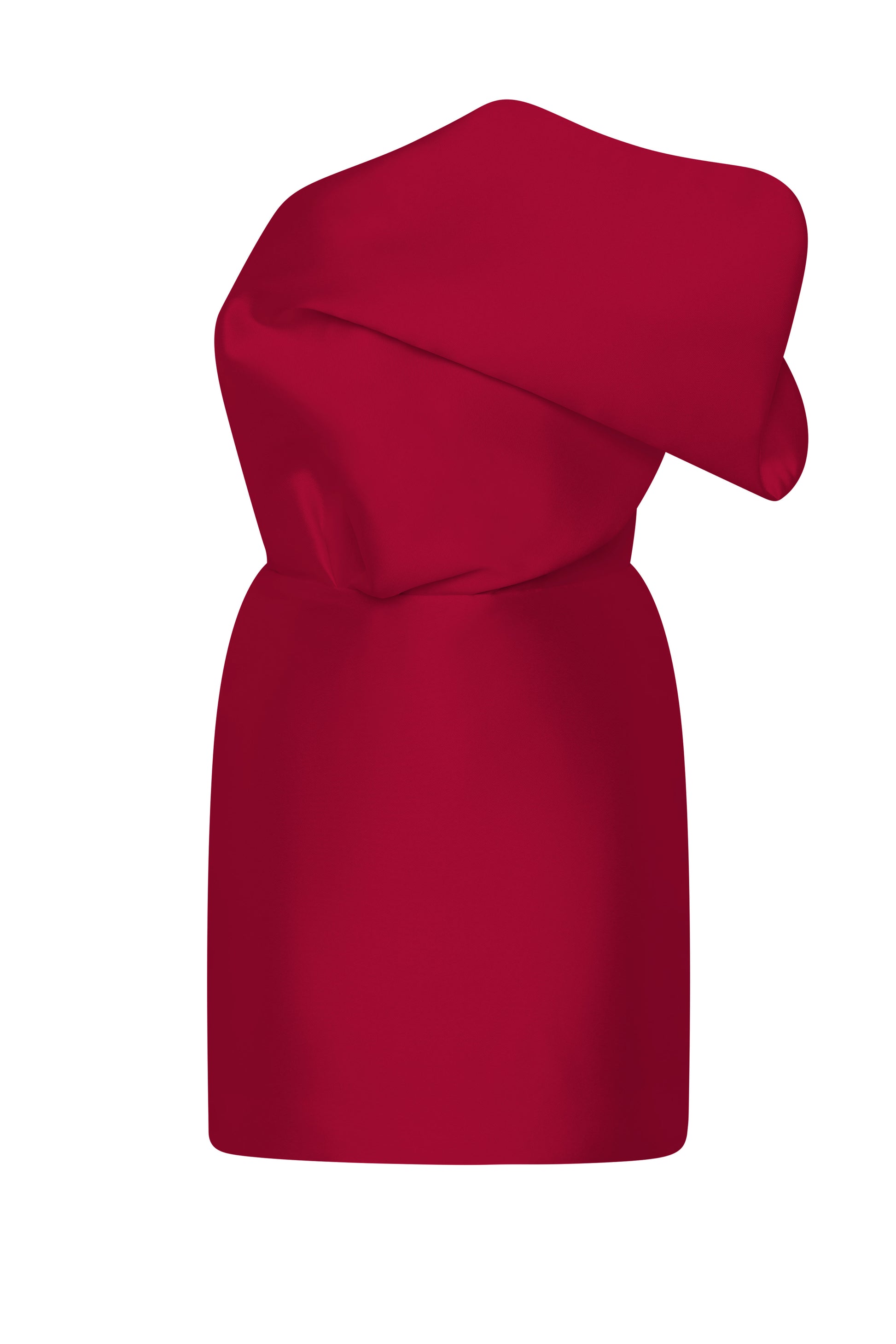 SCULPTURAL FAN-LIKE MINI DRESS AVAILABLE IN BLACK, IVORY, ROSEWATER, RUBY, AND SANDY BLUSH