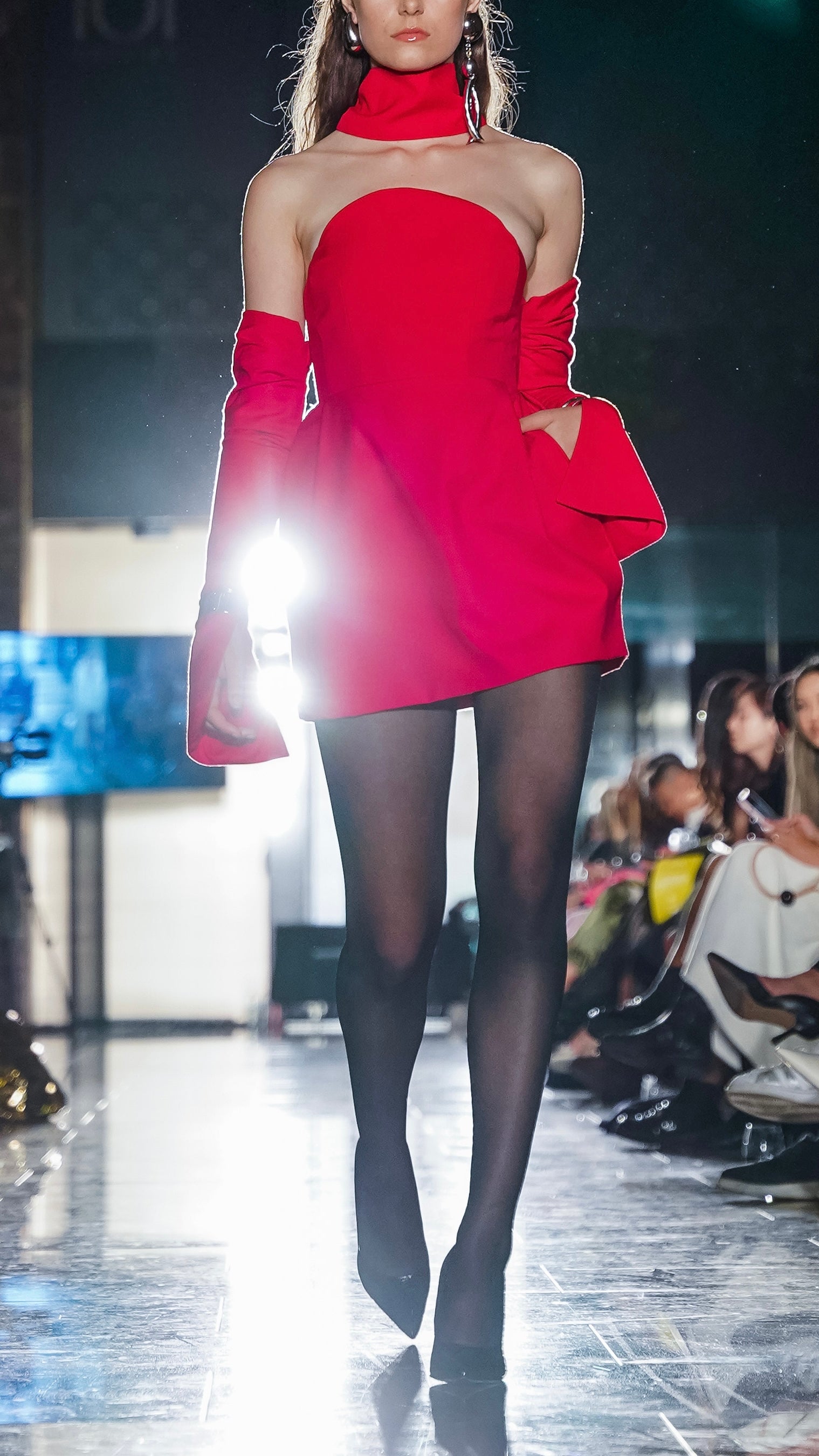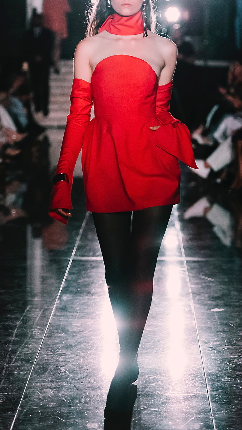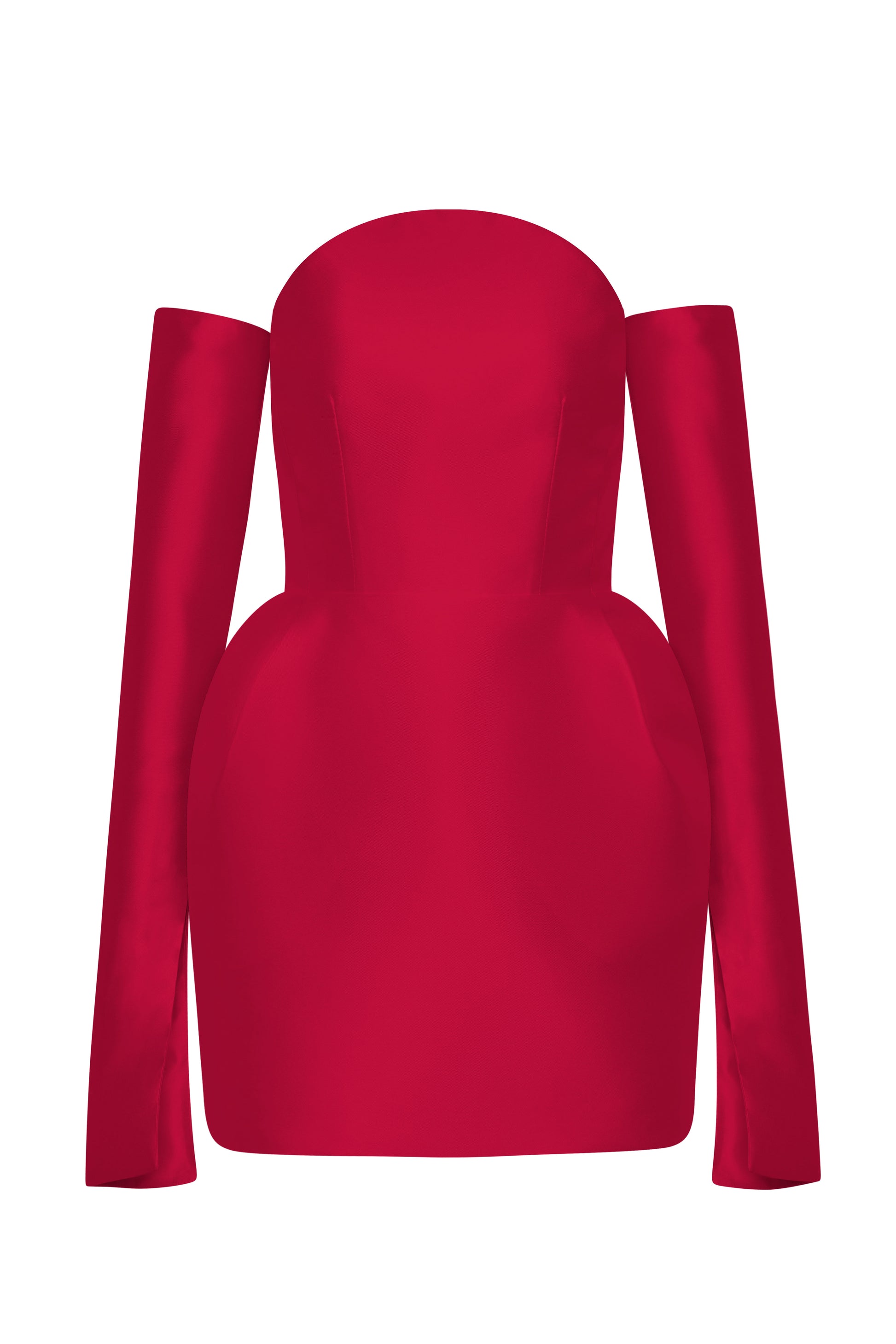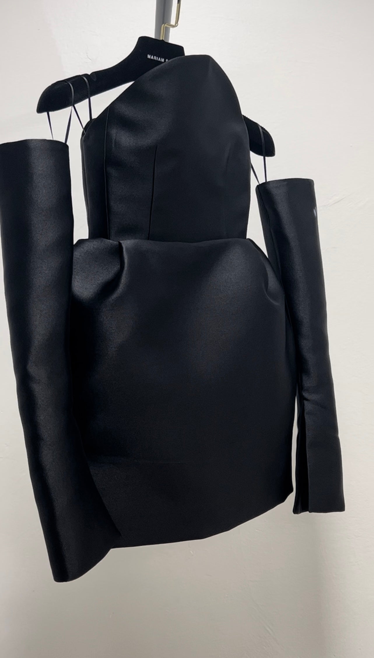 STATEMENT BONED CURVED BODICE MINI WITH POCKETS AND MATCHING CUFF SLEEVES