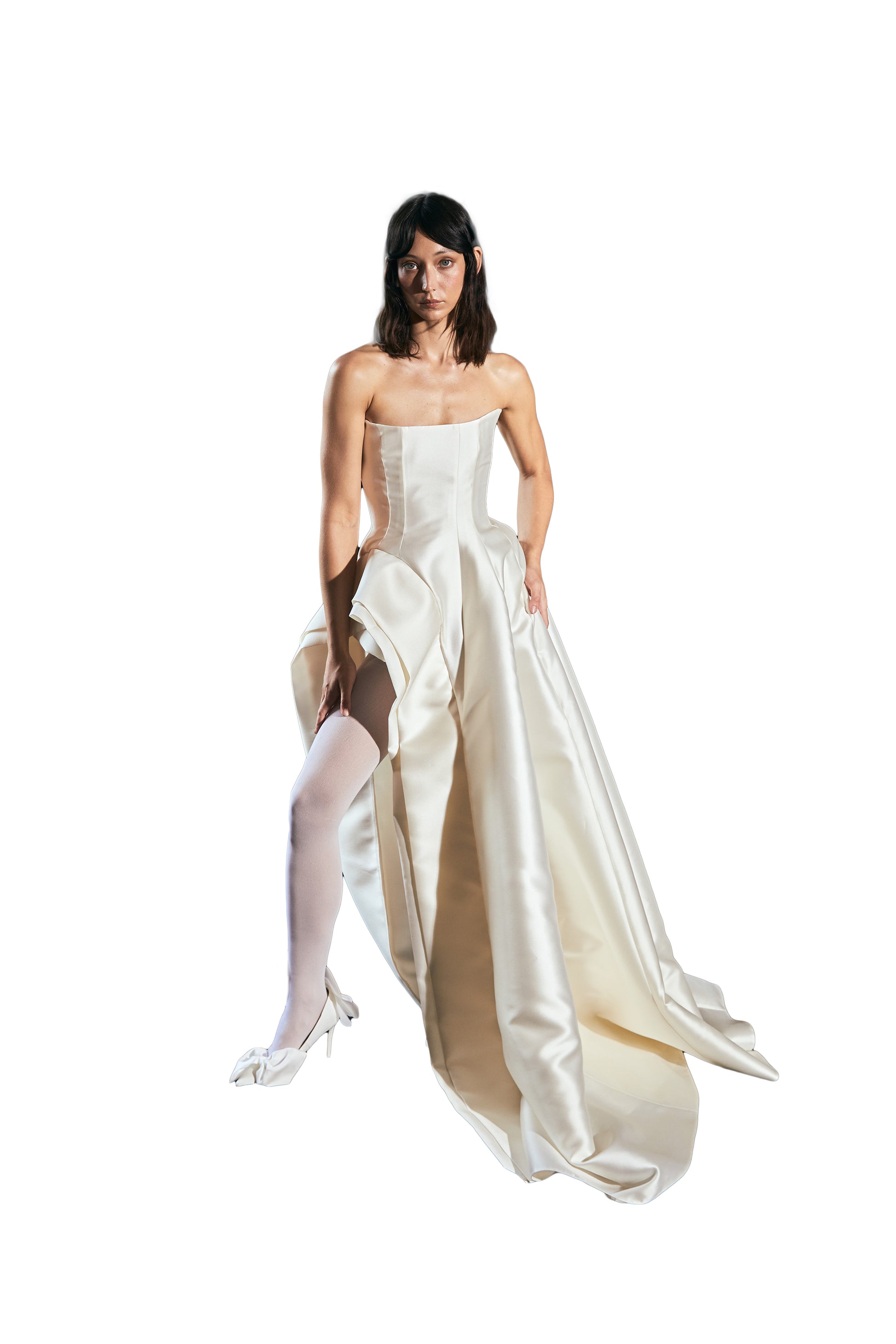 EVE BONED STRAPLESS GOWN WITH HIGH STRUCTURED SLIT