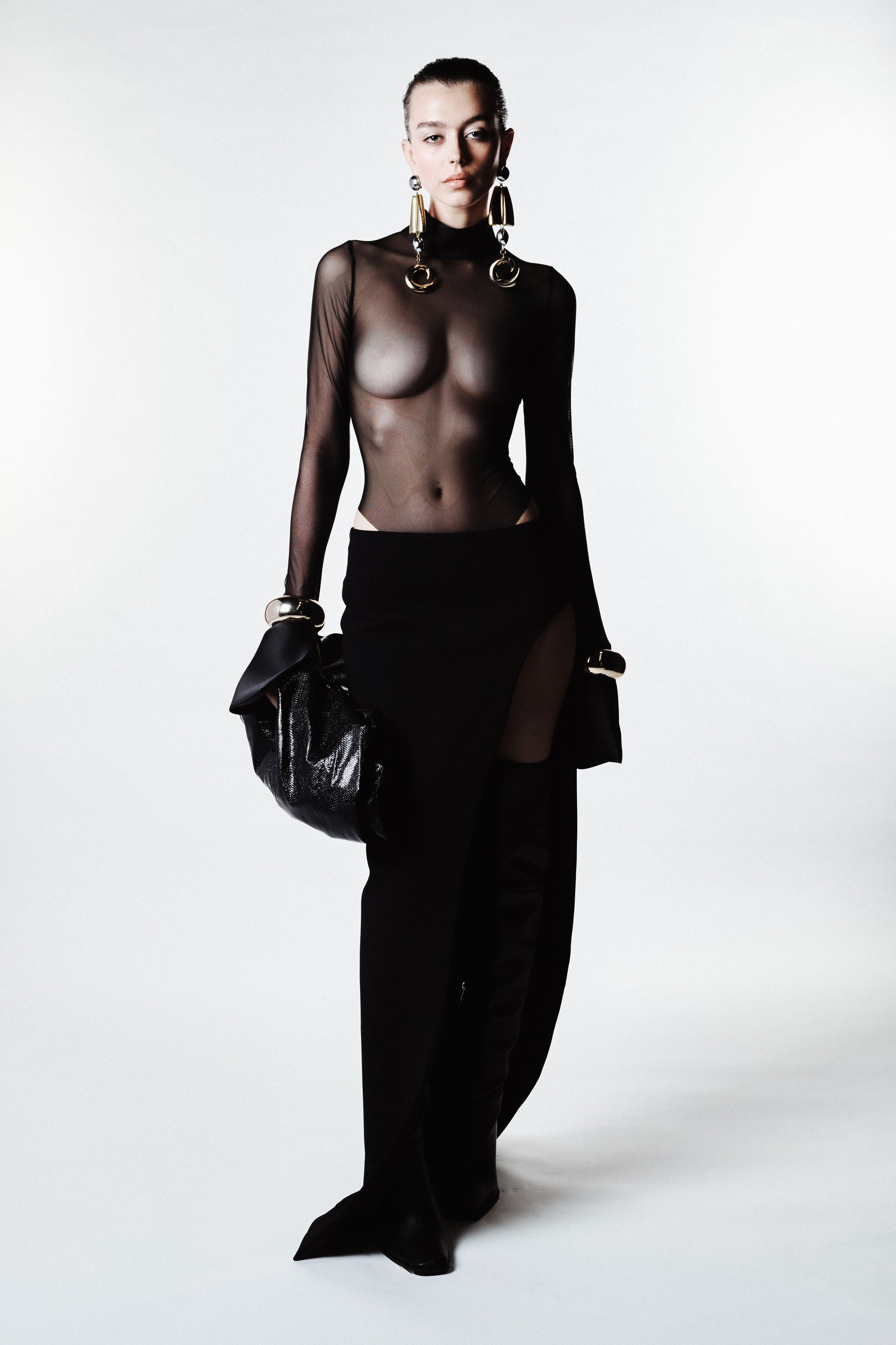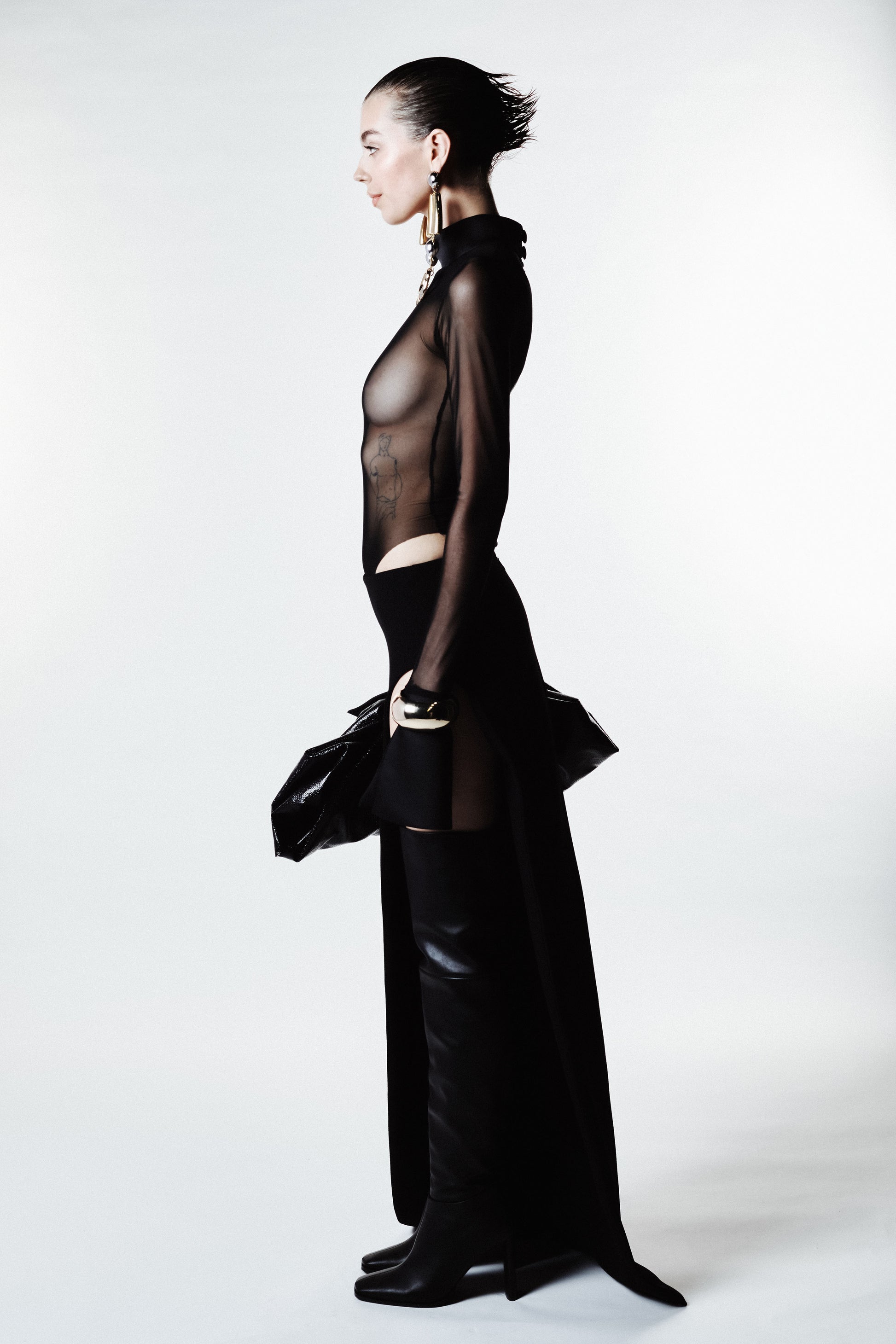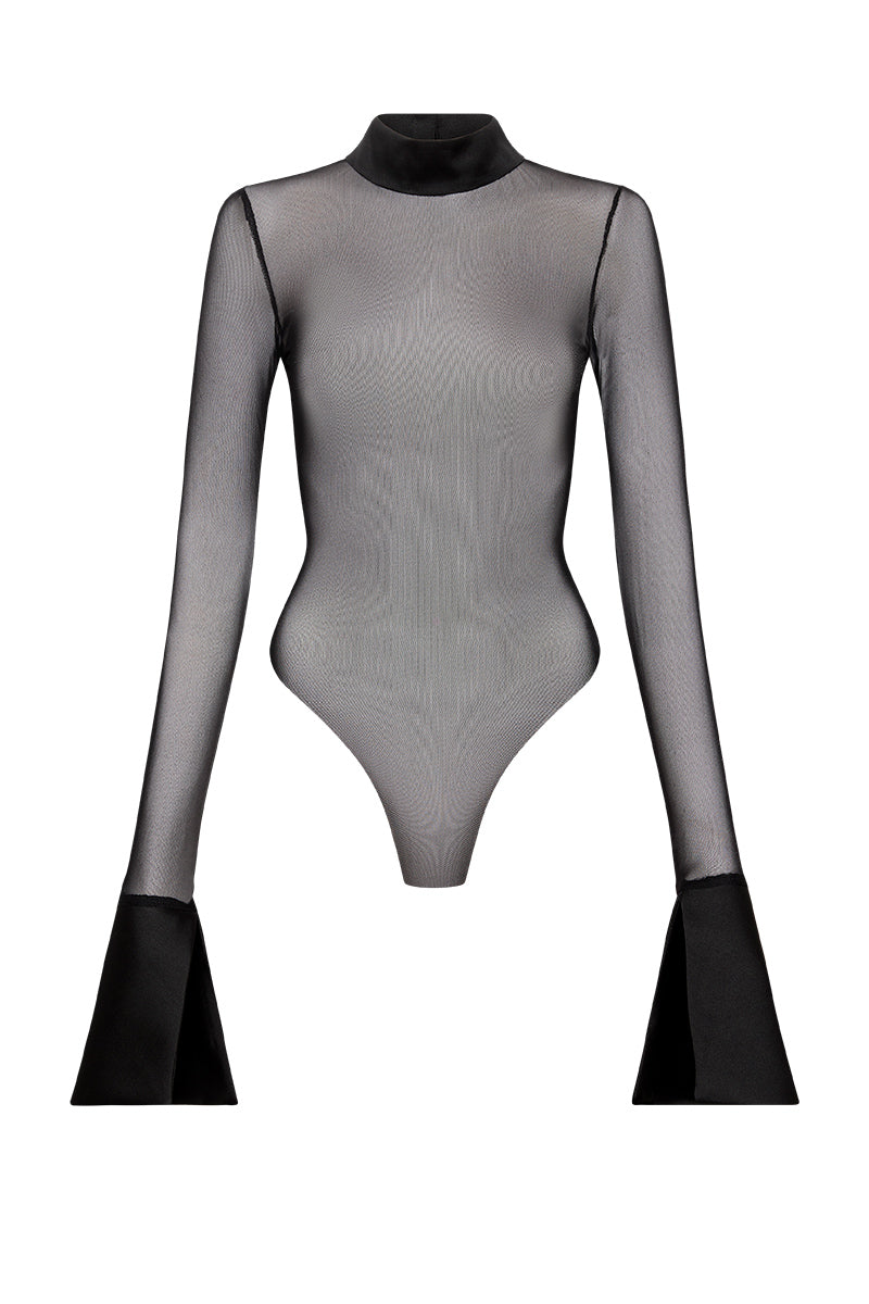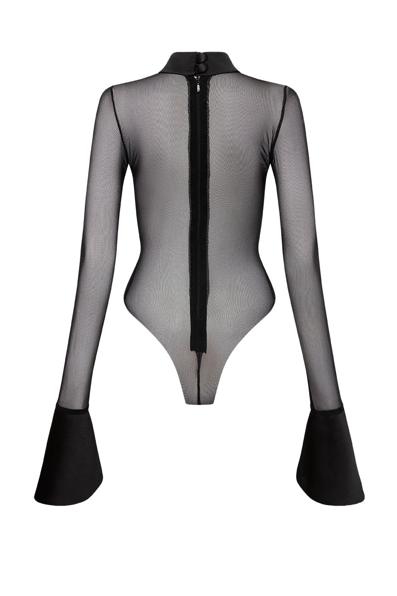 SHEER HIGH NECK LONG SLEEVE BODYSUIT.