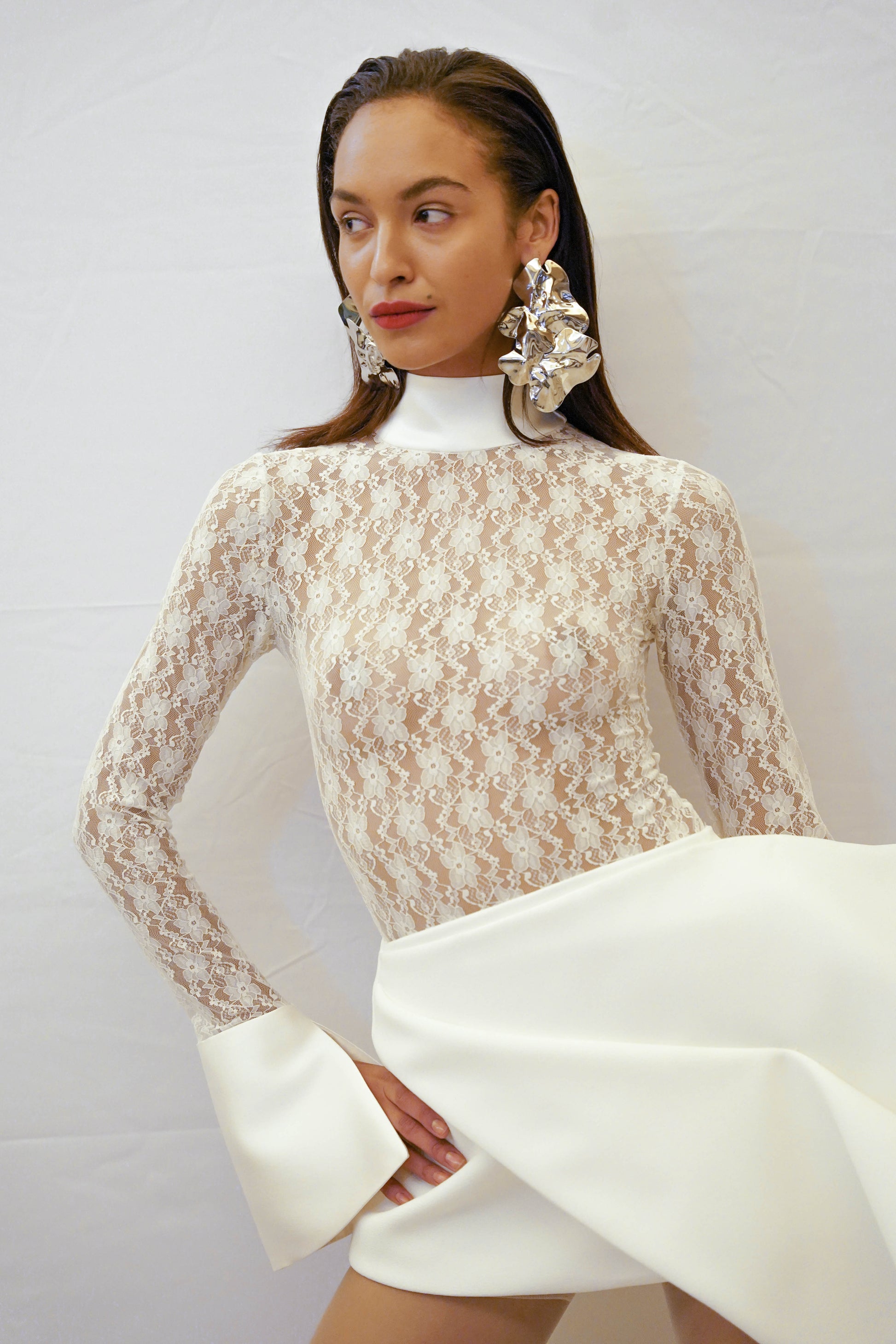 FREDDIE BODYSUIT - TRANSPARENT LACE BODYSUIT WITH NO LINING