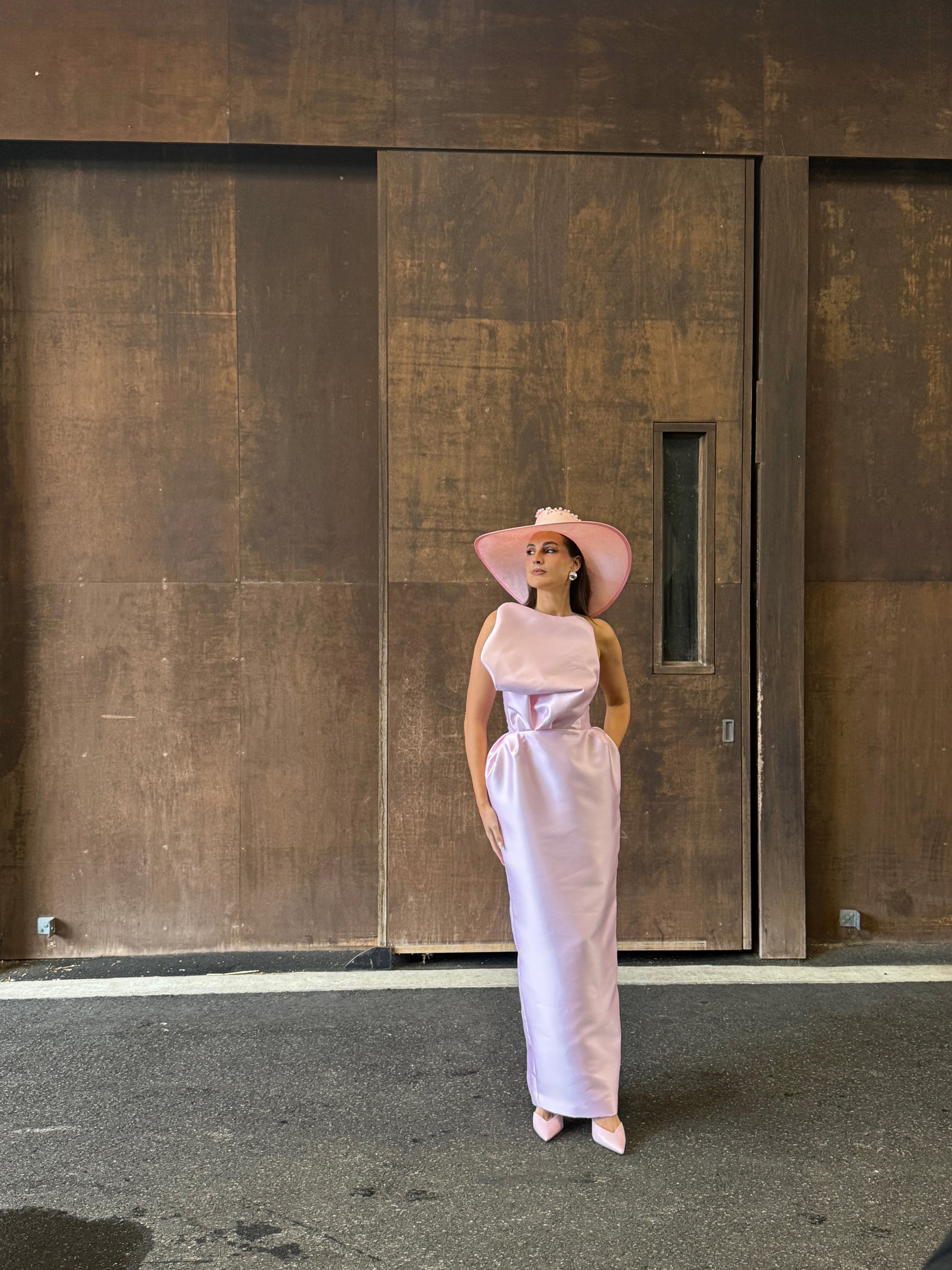 SCULPTURAL STRAPLESS GOWN WITH A SLIGHT PUFF IN THE WAIST