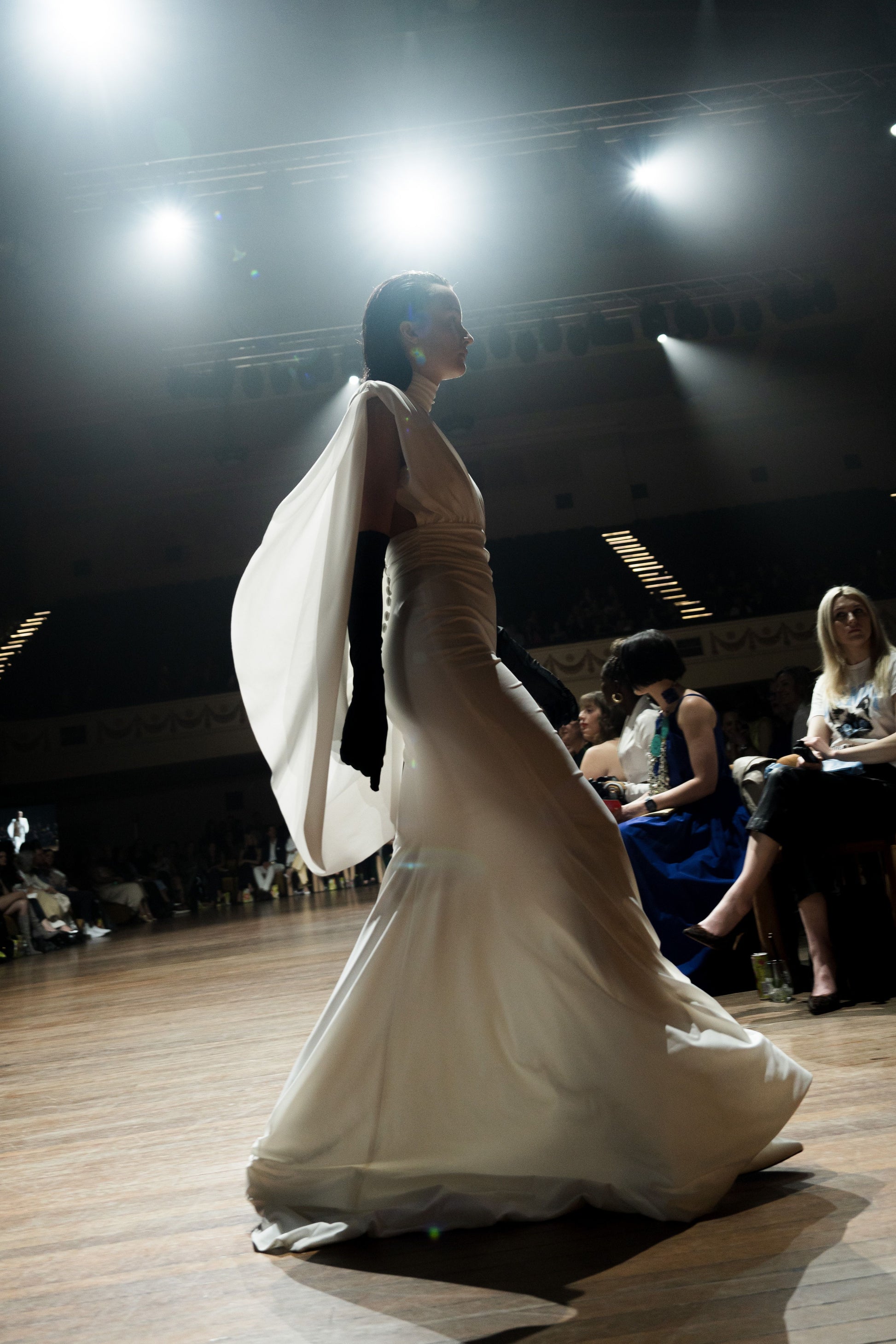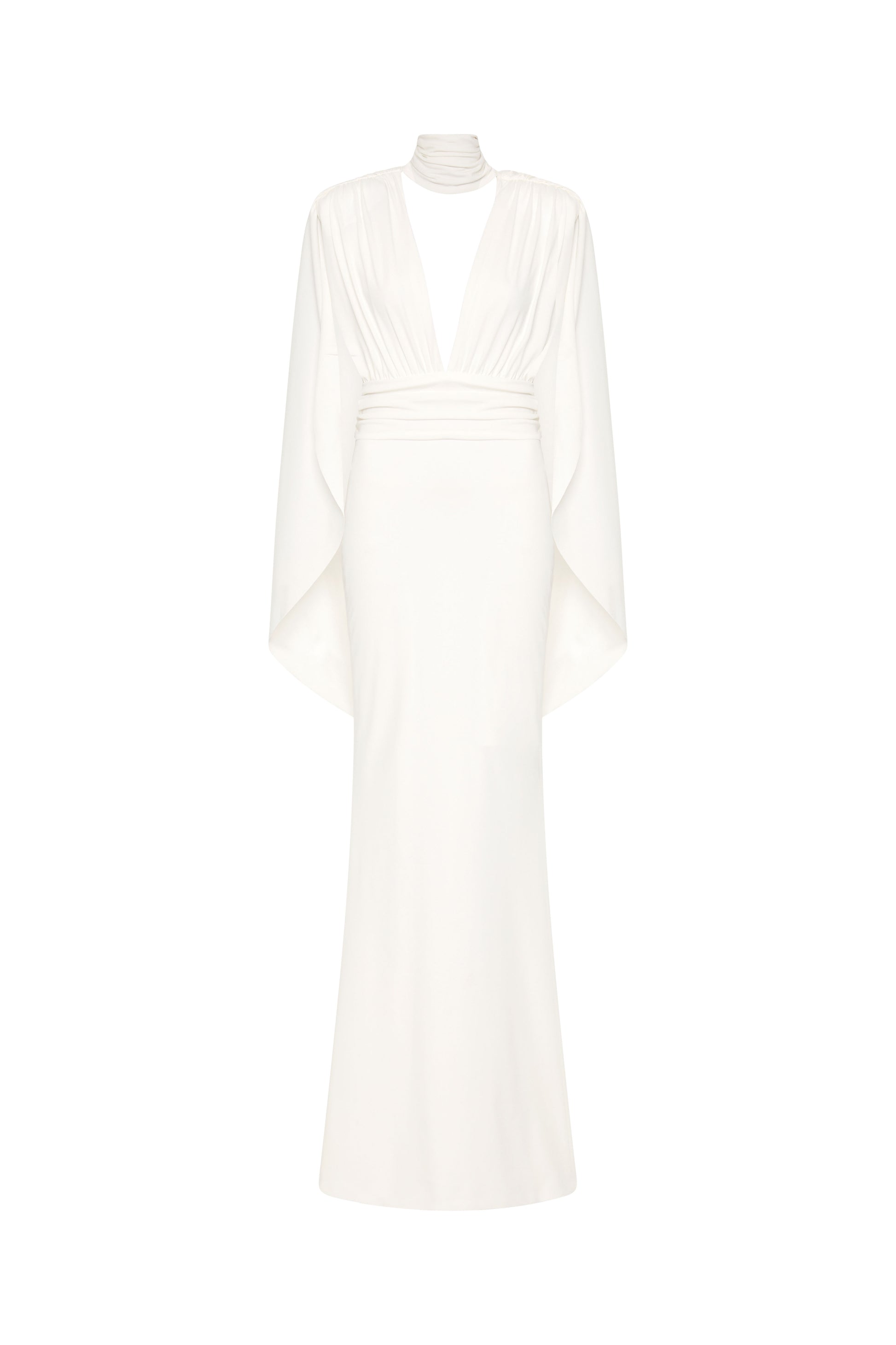 WHITE GOWN, WITH DETAILED DRAPES