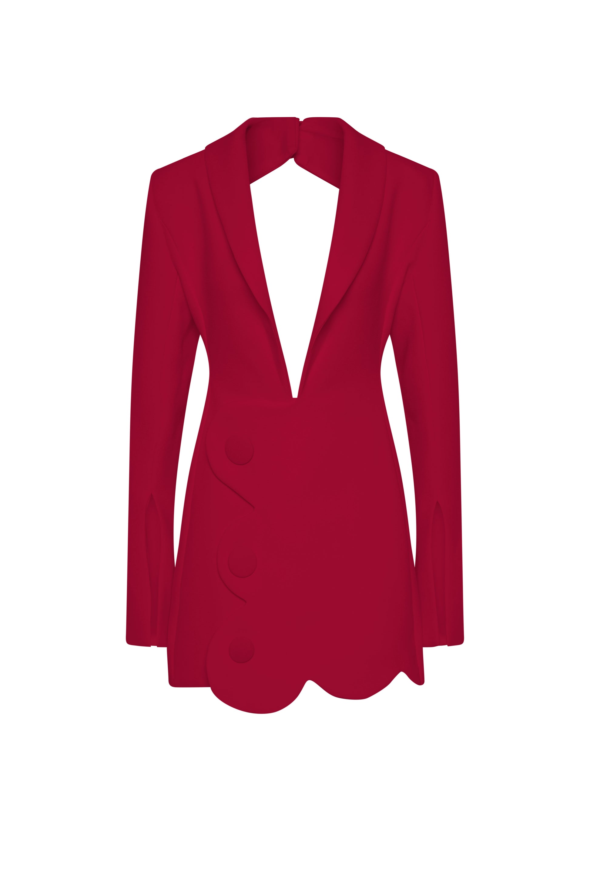 SCALLOP DETAIL CREPE BLAZER DRESS WITH SIGNATURE SPLIT CUFF DETAIL