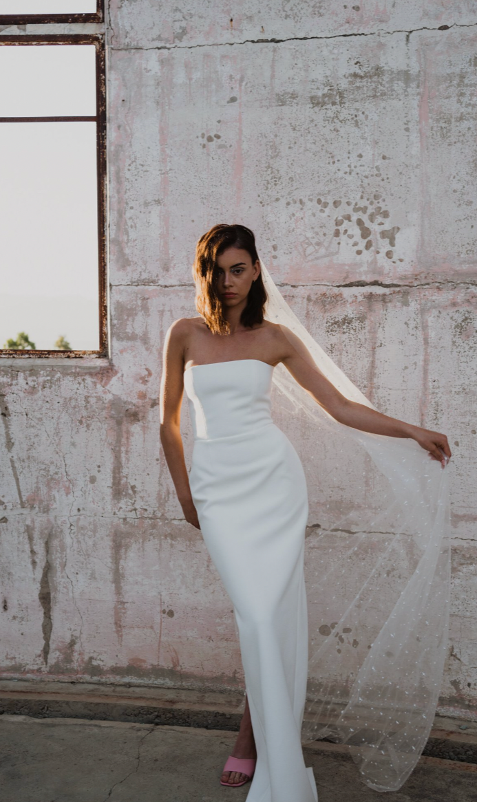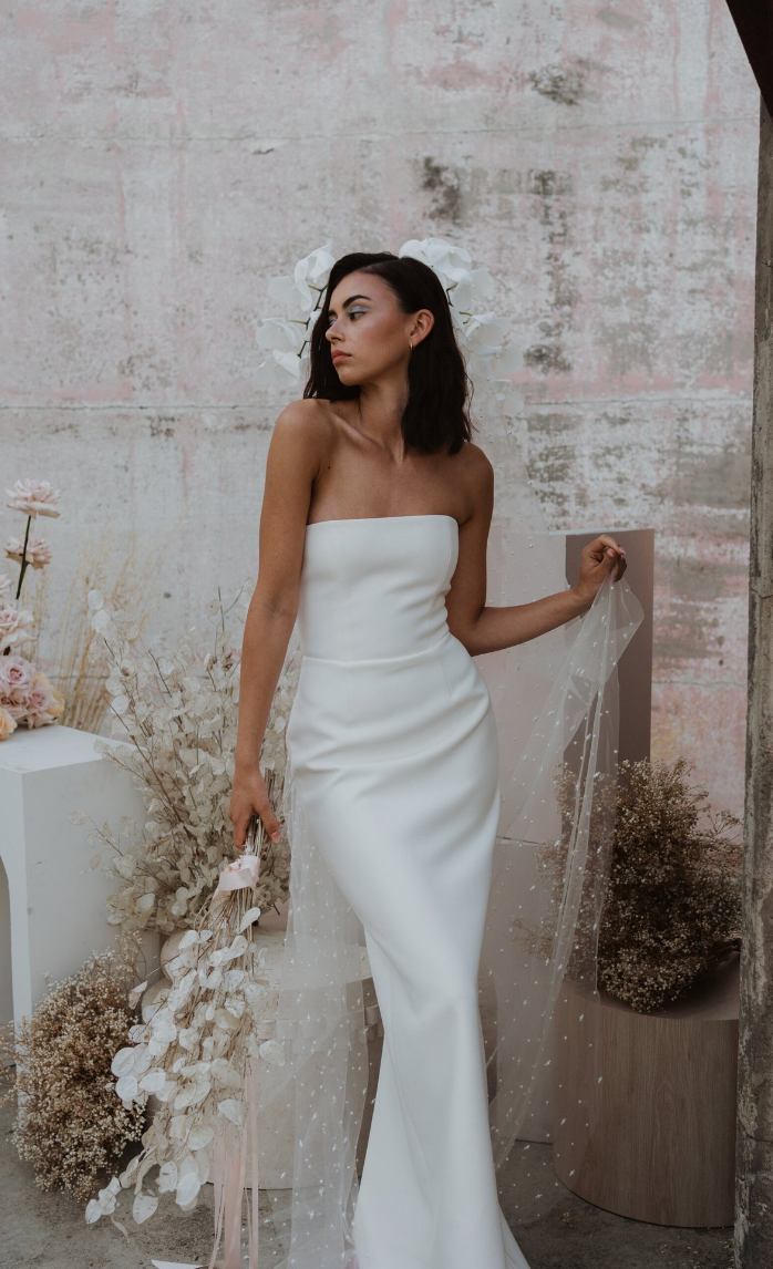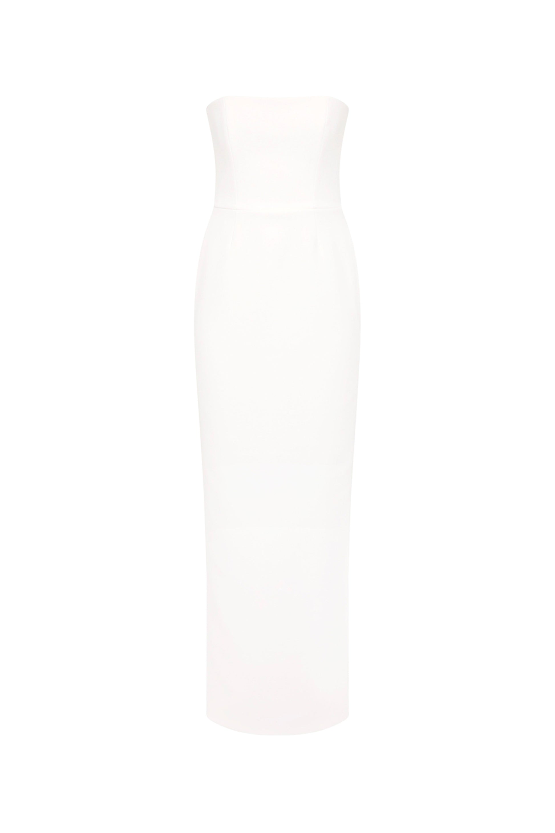 STRUCTURED STRAPLESS GOWN WITH BONING IN IVORY