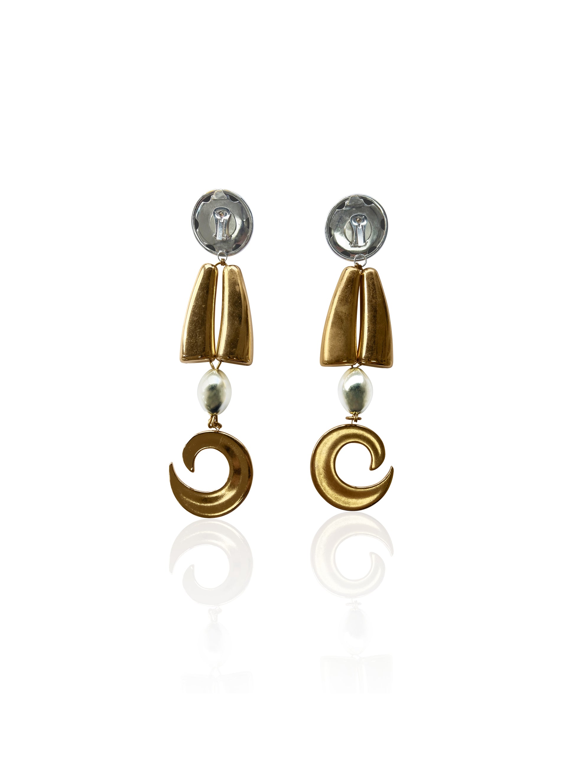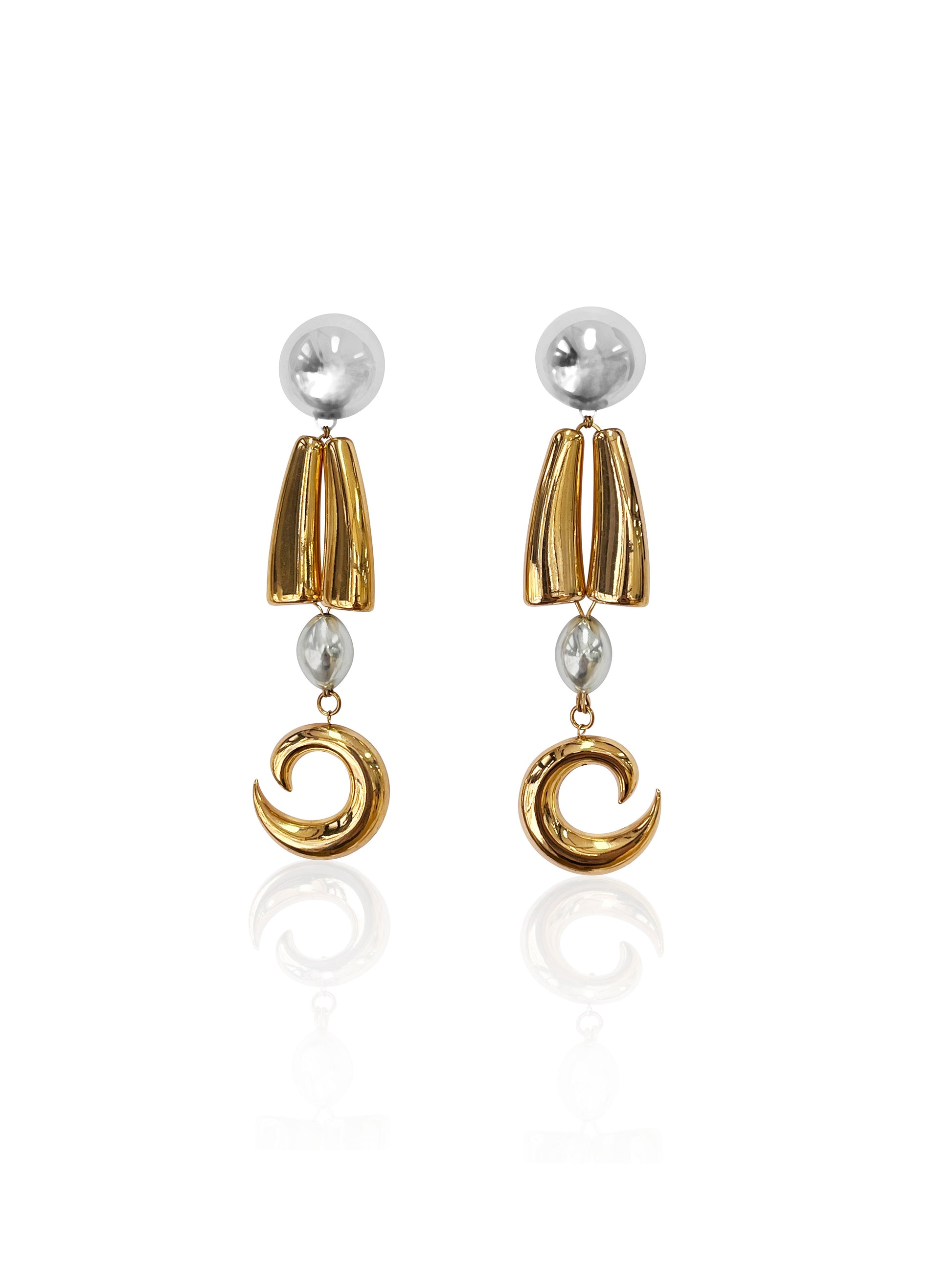 INDULGE IN THE TIMELESS ELEGANCE OF THESE METICULOUSLY CRAFTED EARRINGS, EXPERTLY DESIGNED WITH VINTAGE COMPONENTS AND ONE-OF-A-KIND HARDWARE, ALL COMPLETED WITH A STUNNING SILVER AND GOLD FINISH IN OUR SYDNEY STUDIO